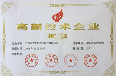• 鐵龍公司憑借專業(yè)的研發(fā)隊(duì)伍、雄厚的技術(shù)實(shí)力、持續(xù)的創(chuàng)新能力、科學(xué)的企業(yè)管理,2016年11月成功榮獲“高新技術(shù)企業(yè)”證書,由此正式邁入高新技術(shù)企業(yè)行列!