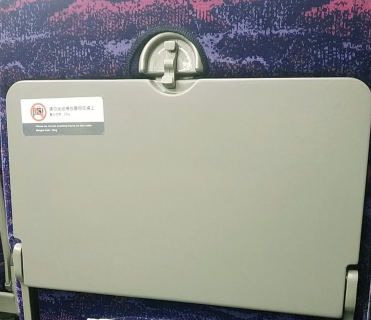• 小桌板的正確開啟方式,擰動(dòng)旋鈕,可以將小桌板放下,桌板與前排座椅相連。